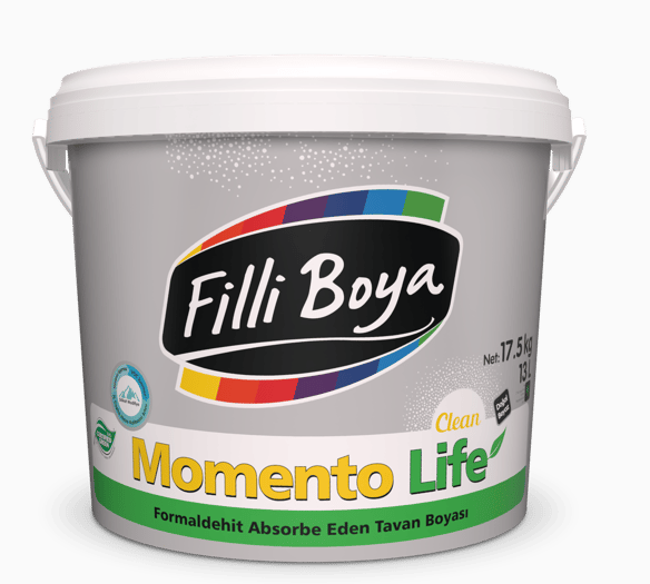 Filli Boya Momento Life Clean hava kalitesine olumlu etki eden ve sağlığa duyarlı yapıya sahip bir iç cephe tavan boyasıdır. İçeriğinde hiçbir kimyasal içermeyen, ürün yüksek örtücülüğe sahiptir. Doğal matlık ve beyazlık sunar. Doğal bir ham madde olan silikat ile modifiye edilerek ortaya çıkan üstün performanslı, akrilik bağlayıcı teknolojisi ile geliştirilmiştir.